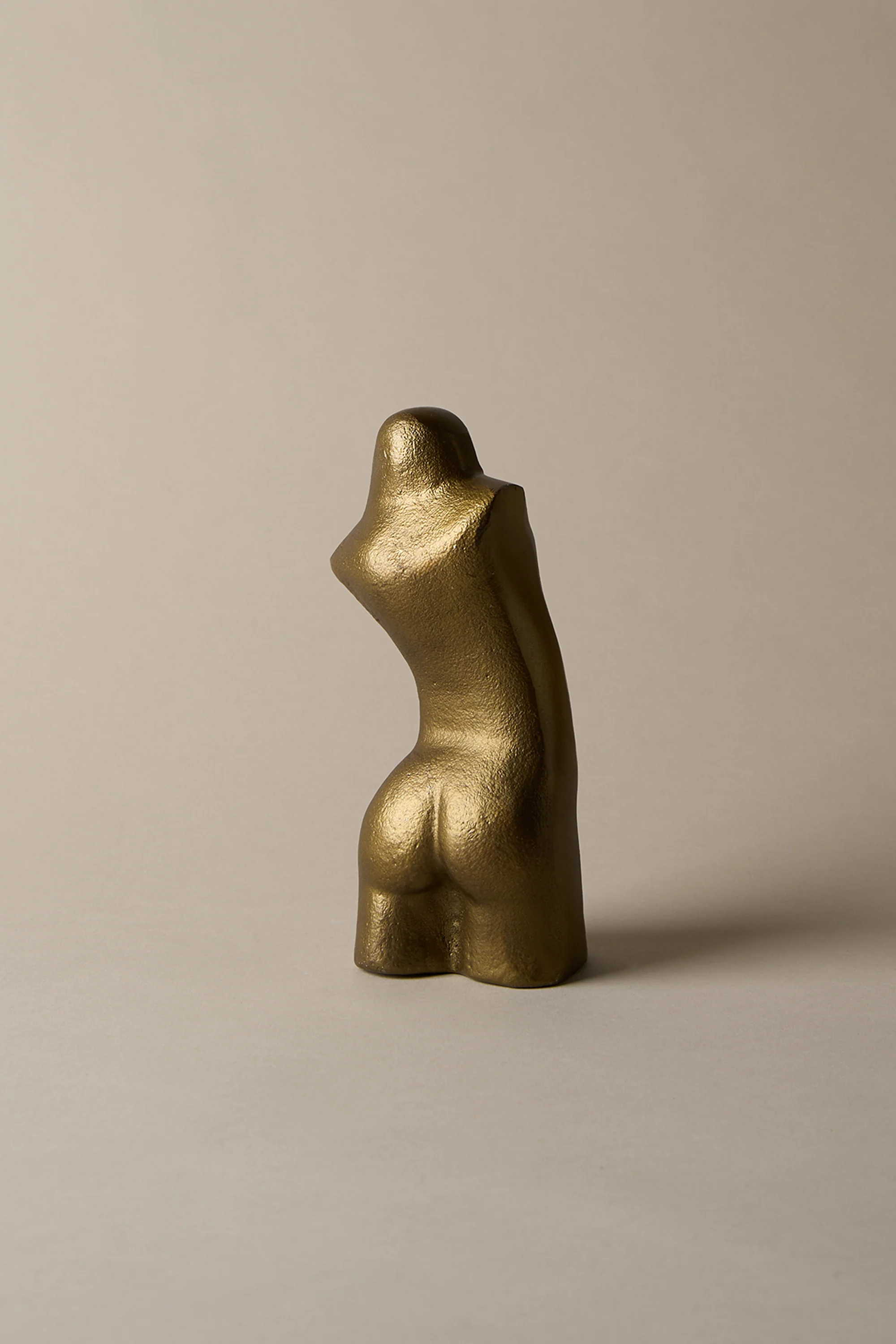 This elegant home decor piece blends the rugged, natural texture of stone with the luxurious shine of gold, creating a perfect balance of modern sophistication and timeless artistry. The detailed stone texture adds depth and dimension, while the metallic gold highlights its graceful contours, making it a captivating centerpiece for any room. Ideal for contemporary, minimalist, or eclectic decor styles, this torso sculpture is a perfect display piece for any home.